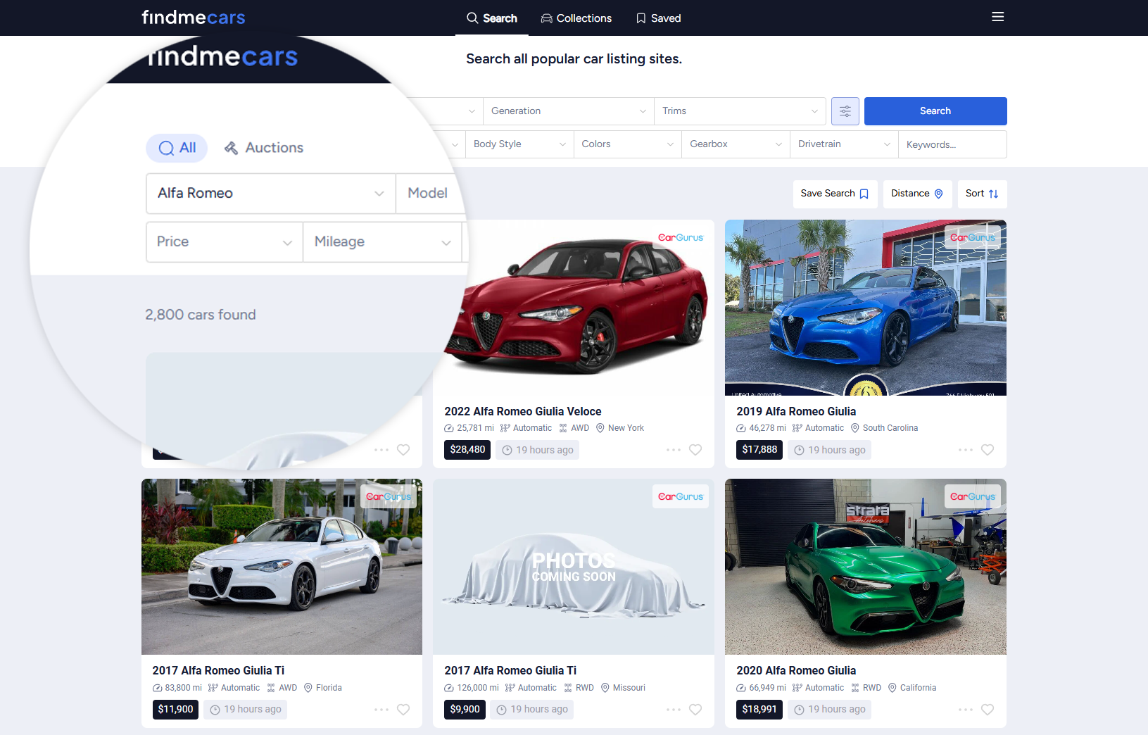 Findmecars features retail car listings from all US based classified and auction websites, except for Facebook Marketplace, Craigslist, Hemmings, and Mecum Auctions. Sources based outside of the United States are not supported at this time.